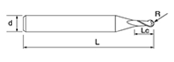| Ne. | Průměr D | R Úhel R | Délka flétny Lc | Celková délka L | Shank Dia d | Počet čepelí F |