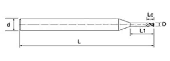 | Ne. | Průměr D | Délka flétny Lc | Efektivní délka L1 | Celková délka L | Shank Dia d | Počet čepelí F |