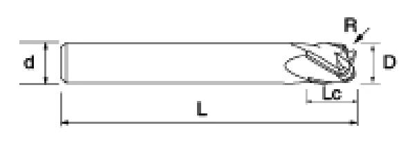 | Ne. | Průměr D | R Úhel R | Délka flétny Lc | Celková délka L | Shank Dia d | Počet čepelí F |