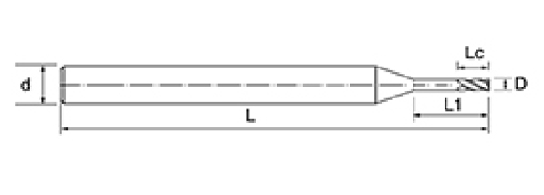 | Ne. | Průměr D | Délka flétny Lc | Efektivní délka L1 | Celková délka L | Shank Dia d | Počet čepelí F |