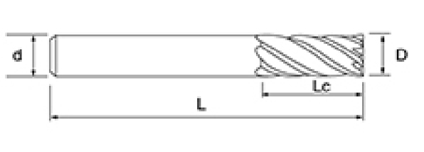 | Ne. | Průměr D | Délka flétny Lc | Celková délka L | Shank Dia d | Počet čepelí F |