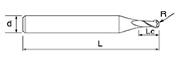 | Ne. | Průměr D | R Úhel R | Délka flétny Lc | Celková délka L | Shank Dia d | Počet čepelí F |