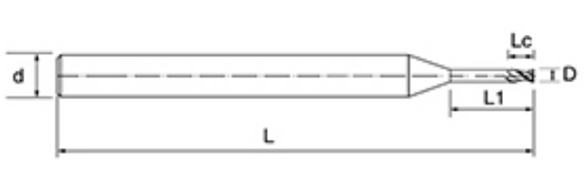 | Ne. | Průměr D | Délka flétny Lc | Efektivní délka L1 | Celková délka L | Shank Dia d | Počet čepelí F |