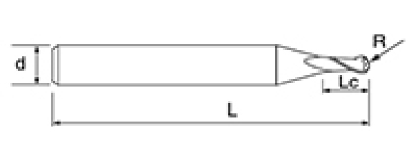 | Ne. | Průměr D | R Úhel R | Délka flétny Lc | Celková délka L | Shank Dia d | Počet čepelí F |