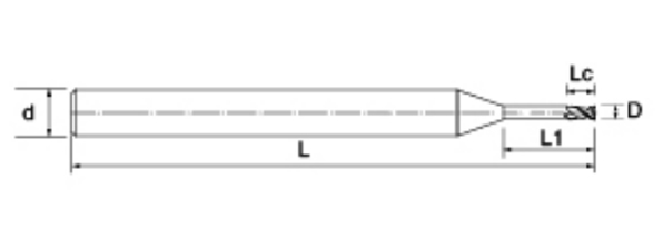 | Ne. | Průměr D | Délka flétny Lc | Efektivní délka L1 | Celková délka L | Shank Dia d | Počet čepelí F |