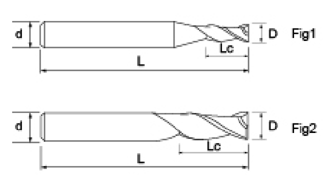 | ne | Průměr D | Délka flétny Lc | Celková délka L | Shank Dia d | Počet čepelí F |