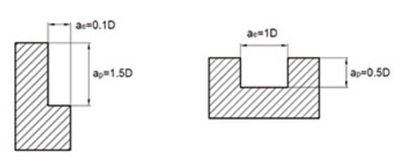 1. Výše uvedená tabulka je založena na referenčních hodnotách pro boční frézování. Řezné podmínky pro frézování drážek jsou založeny na 70 % rychlosti posuvu v tabulce výše.