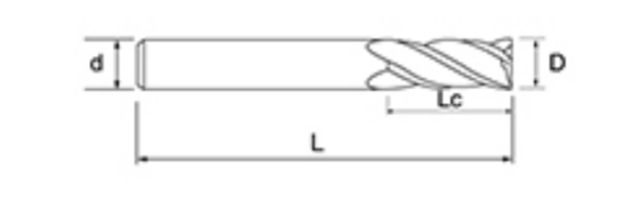 | Ne. | Průměr D | Délka flétny Lc | Celková délka L | Shank Dia d | Počet čepelí F |